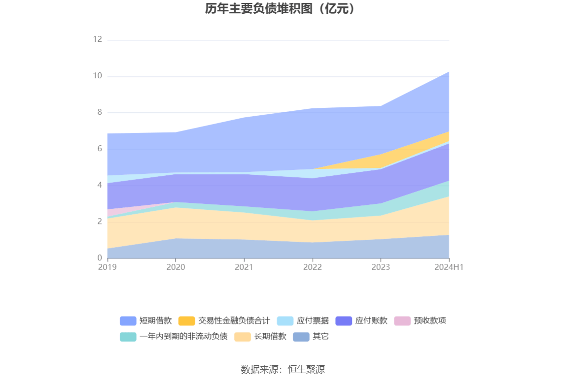 负债重大变化方面,截至2024年上半年末,公司长期借款较上年末增加63.87%,占公司总资产比重上升2.98个百分点;短期借款较上年末增加23.68%,占公司总资产比重上升1.58个百分点;交易性金融负债合计较上年末减少29.40%,占公司总资产比重下降1.26个百分点;长期应付款合计较上年末增加196.78%,占公司总资产比重上升0.78个百分点。