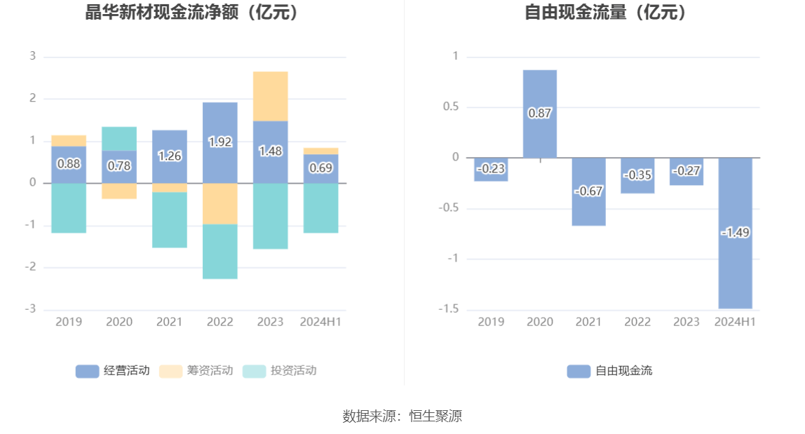 进一步统计发现,2024年上半年公司自由现金流为-1.49亿元,上年同期为-0.31亿元。