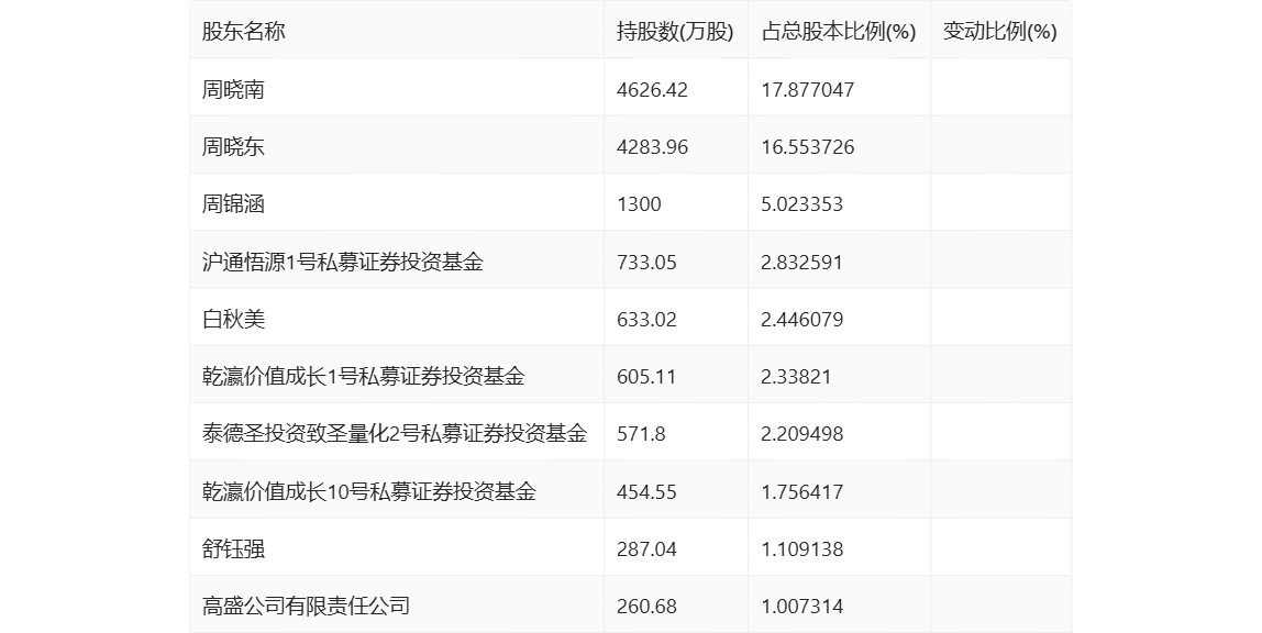 半年报显示,2024年上半年末公司十大流通股东中,新进股东为舒钰强、高盛公司有限责任公司,取代了一季度末的董华芳、毕雪涛。在具体持股比例上,沪通悟源1号私募证券投资基金持股有所下降。