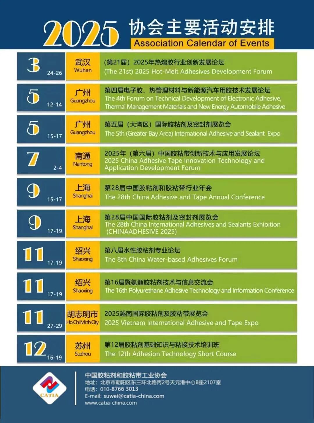 3、中国胶粘剂和胶粘带工业协会2025年活动安排
