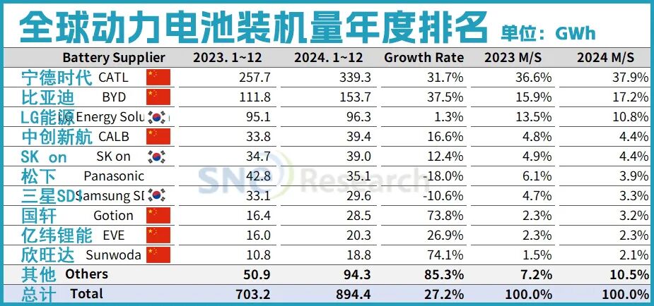 LGES虽排名保持不变,仍位居第三,但其装机量同比出现大幅下跌,市场份额有所缩。