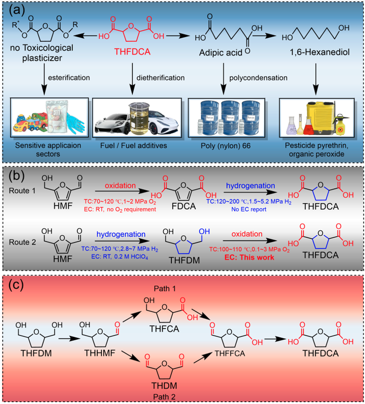 然而,FDCA加氢合成THFDCA难度大(图1b, route 1),依赖贵金属催化剂,同时反应温度和压力要求高,亟需探索更加温和高效的合成方法。