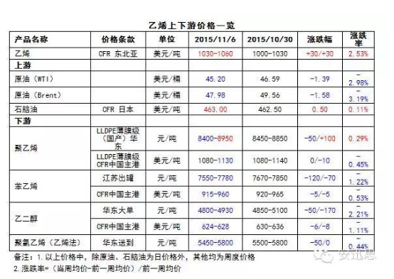 下游方面,乙二醇国内市场以2.2%幅度领跌,除受原油价格影响外,疲弱基本面亦抑制业者入市积极性。聚乙烯市场涨跌互现,高压线性受终端农膜行业开工率走高支撑上探,预计短期窄幅调整为主。受到电石法PVC走低拖累,乙烯法PVC价格下滑。苯乙烯市场港口现货库存降低,但出于对后期大量远洋货到港担忧,江苏出罐价格小幅下跌。