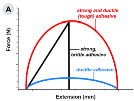 粘接是现代社会的必然部分!然而,开发既强且韧的胶粘剂却是现代人类也未曾实现的梦。强力胶水如环氧胶、异氰酸酯胶粘接牢度大,但存在脆性脱粘(韧性)问题;而“弱力”胶如涂布胶避免了脆性脱粘但强度却差强人意(图1)。如何协调粘接强度和韧性?