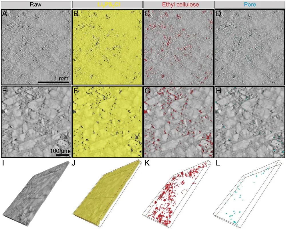 图4 XCT显示的薄SE膜中Li6PS5Cl和乙基纤维素的分布