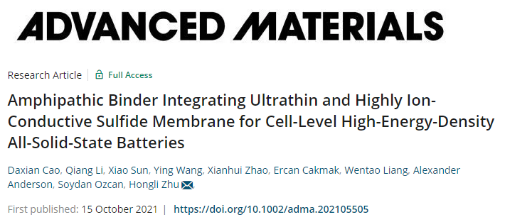 东北大学:乙基纤维素粘结剂实现超薄、高离子导电硫化物固态电解质膜!