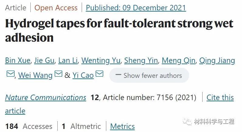 在此,来自南京大学的研究者报告了一种水凝胶带可以在几秒钟内与组织形成强烈的物理相互作用,并在数小时内逐渐形成共价键。相关论文以题为“Hydrogel tapes for fault-tolerant strong wet adhesion”发表在Nature Communications上。更多精彩视频请抖音搜索'材料科学网'。