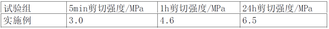 固化1小时后,剪切强度为4.6MPa;固化24h后,剪切强度为6.5MPa。