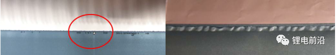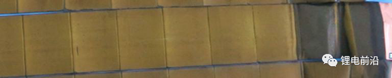 实例:JZ-1 粘结剂在涂布冷压过程中没有发现脱膜掉粉等现象,但是在满充后阳极单面区脱膜较严重,如图所示。