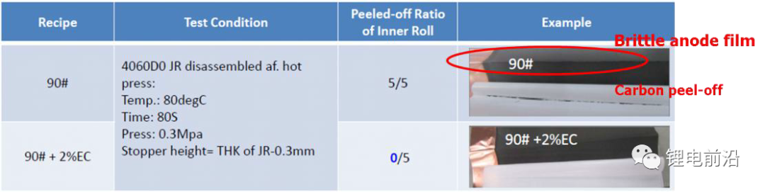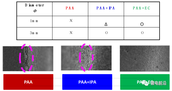 (2)对于水性的 PAA 体系,我们采用的是加入 EC 增塑的办法,对改善极片开裂有明显的帮助:
