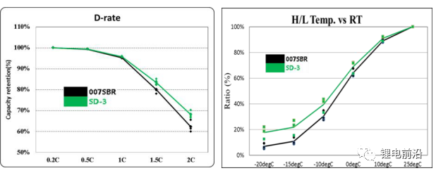 图 8.1 007SBR 与 SD-3 倍率及高低温性能对比