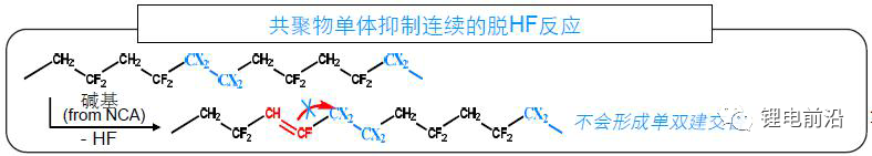 4)开发 Anti-gel PVDF,开发思路如下图,接枝其他基团取代单元基团- CH2-CF2-中 H/F,抑制聚合物中连续的脱 HF 反应,减少交联位点的比例。目前采用的接枝基团或改