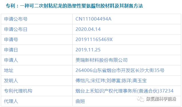 摘要:本发明属于高分子材料技术领域,尤其涉及一种可二次射粘尼龙的热塑性聚氨酯包胶材料及其制备方法。本发明中,作为基材的热塑性聚氨酯弹性体(TPU)赋予材料耐磨性好、手感柔软爽滑的特点;聚氨酯热熔胶可延长材料的表干时间与黏性保持时间,使软胶在二次注塑时依然保持黏性,产生类似于热熔胶的作用,并进一步在界面形成氢键,依靠氢键及范德华力获得良好的界面强度。本发明的包胶材料可在较低的加工温度(小于195℃)下,实现与尼龙的包覆,大大提高180°剥离强度,甚至可大于3.5N/mm。