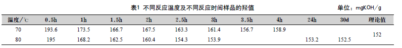 表1 是不同反应温度及不同反应时间物料的羟值。