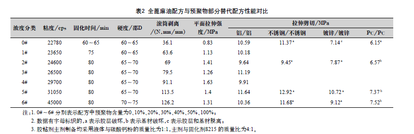 2.2 对预聚物替代蓖麻油制得双组聚氨酯胶粘剂的性能研究