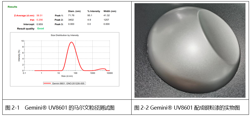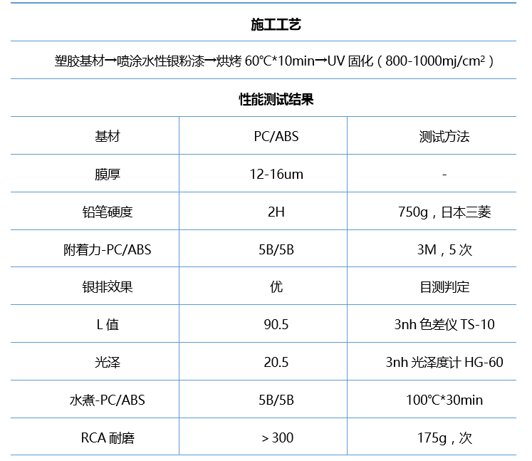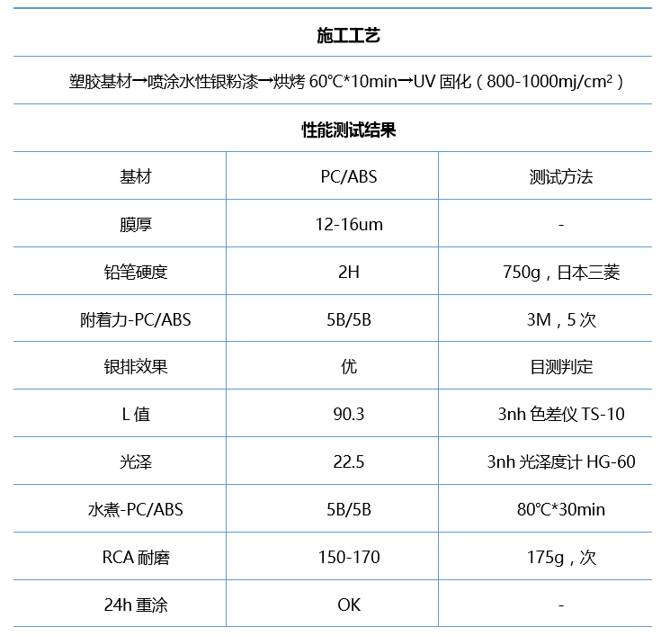表2-1 Gemini® UV8601一涂银性能测试数据