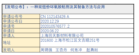 摘要:本发明涉及一种双组份环氧胶粘剂及其制备方法与应用。该胶粘剂,包括重量比1:0 .8‑1 .2 的A组分和B组分;所述A组分按其自身总重计,由以下原料组成:环氧树脂5‑15%、聚氨酯改性环氧树脂10‑25%、增韧剂5‑20%、环氧稀释剂3‑ 10%、无卤阻燃填料20‑50%、导热填料20‑50%、 消泡剂0 .1‑1%、白炭黑1‑3%,且各原料含量百 分数之和为100%;所述B组分按其自身总重计, 由以下原料组成:脂肪胺5‑15%、聚醚胺2‑10%、 改性聚酰胺8‑16%、无卤阻燃填料20‑50%、导热填料20‑50%、消泡剂0 .1‑1%、白炭黑1‑3%,且各原料含量百分数之和为100%。所述胶粘剂具有环保、阻燃、导热、固化速度快、粘接强度高且 韧性好、抗震动的特点,非常适合用于动力电池电芯与底部水冷板之间的导热粘接。