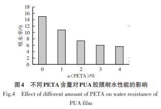 不同 PETA 含量对 PUA 胶膜耐水性能的影响, 如图4所示。