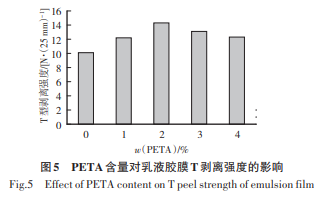 PETA含量对乳液胶膜T剥离强度的影响,如图5 所示。