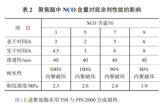 2.2 聚氨酯中 NCO 含量对底涂剂性能的影响