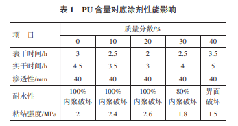 2.1 聚氨酯(PU)含量对底涂剂性能的影响