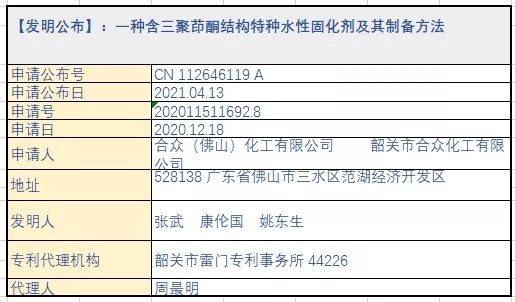 摘要:本发明涉及一种含三聚茚酮结构特种水性固化剂,按重量份计,其组分为:三聚体60.0~80.0份、二羟甲基丙酸1.0~2.5份、低聚物多元醇5.0~10.0份、醇酸树脂6.0~12.0份、二月桂酸二丁基锡0.01~0.1份、多元醇1.0~3.0份、三聚茚酮衍生物2.0~5.0份、中和剂1.5~4.0份、惰性溶剂8.0~15.0份;其中,三聚茚酮衍生物由三聚茚酮与2‑羟基乙胺通过反应制得;本发明提供一种含三聚茚酮结构特种水性固化剂,具有优异的抗划伤性、抗菌性能好、荧光性好、耐化品性好、耐盐雾性良好等特点,与水性羟基组分配制的聚氨酯漆具有高硬度、漆膜抗划伤、流平性好、丰满度高等特点,制备成涂料时无需外加杀菌剂,制备成荧光涂料时无需外加荧光剂。