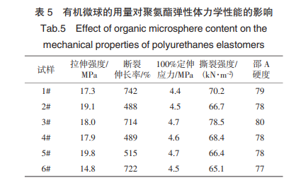 2.5有机微球的用量对聚氨酯弹性体性能的影响