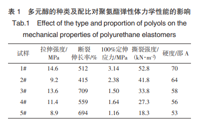 2.1多元醇种类及配比对聚氨酯弹性体性能的影响