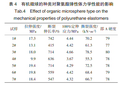 2.4有机微球种类对聚氨酯弹性体性能的影响