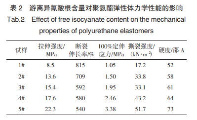 2.2游离异氰酸根含量对聚氨酯弹性体性能的影响