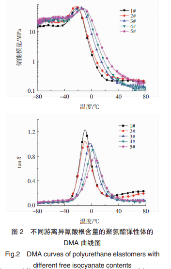 2.2.2游离异氰酸根含量对聚氨酯弹性体阻尼性能的影响