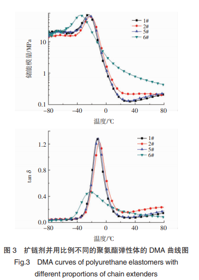 2.3.2扩链剂种类及配比对聚氨酯弹性体阻尼性能的影响