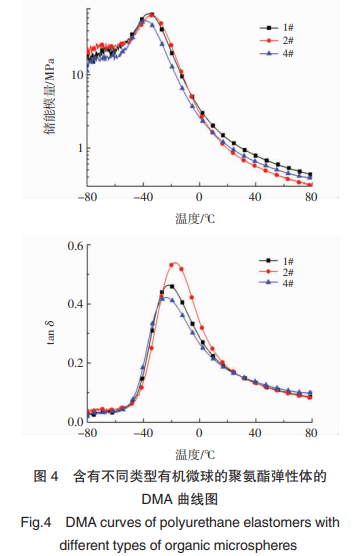 2.4.2有机微球的种类对聚氨酯弹性体阻尼性能的影响