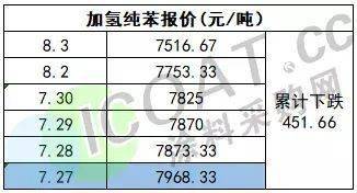 加氢纯苯报价7516.67元/吨,目前已经实现五连跌,累计下跌451.66元/吨。