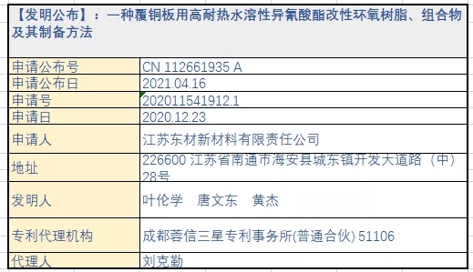 摘要:本发明公开了一种覆铜板用高耐热水溶性异氰酸酯改性环氧树脂、组合物及其制备方法,其特征是:将4,4’‑二氨基二苯甲烷四缩水甘油基环氧树脂、2‑乙基‑4‑甲基咪唑、4,4’‑二异氰酸酯二苯甲烷加入反应器中搅拌升温反应,再加入二乙醇胺反应,然后加入乳酸,最后加适量水拌匀,制得固体量为75%的覆铜板用高耐热水溶性异氰酸酯改性环氧树脂;将该异氰酸酯改性环氧树脂与氨基树脂类固化剂、水性异氰酸酯固化剂、三氟化硼单乙胺和水混合搅拌均匀,即制成覆铜板用高耐热水溶性异氰酸酯改性环氧树脂组合物;本发明覆铜板用高耐热水溶性异氰酸酯改性环氧树脂及组合物特别适用作制造覆铜板用的基体树脂,综合性能良好、环保、实用性强。
