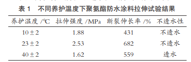 (2)在实际施工过程中,如果不能做到按标准试验条件养护,则应选择高性能的聚氨酯防水涂料进行施工以此来保障后续的使用效果。