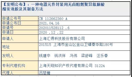 摘要:本发明涉及一种电器元件封装用无卤阻燃聚异氰脲酸酯发泡胶,其特征在于,包括A组分和B组分,所述A组分当中,按重量分数计,包括如下组分:聚醚多元醇30‑60%;聚酯多元醇10‑30%;阻燃剂20‑40%;泡沫稳定剂1‑3%;发泡剂1‑15%;催化剂1‑2 .5%;相变材料5‑10%;所述B组分为多亚甲基多苯基多异氰酸酯,所述A和B组分的添加比例为100:100‑150。还公开了其制备方法。本发明所述的聚异氰脲酸酯发泡胶密度低,发生生热低于100℃,阻燃可达UL94‑V0级,抗压强度高,可通过交变湿热(12h+12h)25℃/95%‑55℃/95%48h测试,适用于各种电器元件的封装。