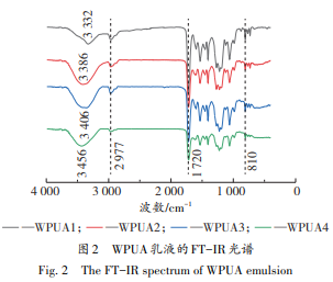 废弃PET降解产物制备的WPUA乳液的红外光谱如图2所示。