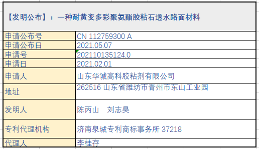 摘要:一种耐黄变聚氨酯胶粘石透水路面材料,属于路面基材领域,由组分A、组分B和骨料组成。组分A包含蓖麻油多元醇、聚酯多元醇、分散剂、无溶剂消泡剂、活性分子筛、活性纳米碳酸钙、无机颜料和触变剂。组分B为HDI固化剂。本发明的有益效果为四个方面,第一为耐候性耐老化性能优异;第二为高强度高韧性和疏水性,提高了路面的防滑性能和安全性,也改善了路面的美观性;第三为优异的透水率和透水率保持性;第四既可保持骨料原色,也可以做成多种颜色提高装饰性能。