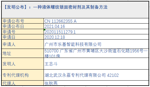 摘要:本发明公开了一种液体螺纹锁固密封剂,包括以下质量组分:四氢邻苯二甲酸二缩水甘油酯50~55份、聚醚多元醇20~25份、环氧树脂20~30份、环氧固化剂5~10份、黏附剂3~8份、催化剂5~8份,以及填料5~15份;所述填料为玻璃纤维颗粒、塑胶颗粒或/和橡胶颗粒,所述颗粒的尺寸为0.005~0.01mm。本发明通过玻璃纤维颗粒、塑胶颗粒或/和橡胶颗粒填充螺栓螺纹与被固定物体之间的微小间隙,从而达到卡合锁固的目的;同时,本发明通过选用多种形状结构的玻璃纤维颗粒、塑胶颗粒或/和橡胶颗粒,不同形状的颗粒的摩擦力方向及摩擦力系数不同,进一步达到锁固的目的。