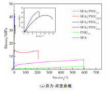采用伺服材料多功能高低温控制试验机进行测量,所有样品的拉伸速度为20mm/min.将所有复合材料裁成矩形(40mm×5mm).为了防止水分破坏氢键,应尽快测量样品,并至少测量3个样品.