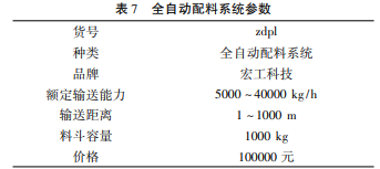 全自动配料系统,是工业自动化生产线上的一个必要过程。自动上料系统是由一个以自动上料操作程序计算机为核心的控制单元,并通过智能控制与各种设备连接的生产系统。它具有高精度测量和自动控制的特点,可以大大减少人力,给企业带来巨大的效益。物料通过送料装置或手动满袋填充的方式分批送入计量料仓中,再通过配料系统进行放料。该配料系统适用于粉状、液体等多种类型物料,可满足各种需求,输送能力强,能够实现快速加料,解决了因TDI加入慢而产生的聚合不均匀等问题,也省去反应釜降温的时间,提高了生产效率。如表7所示。