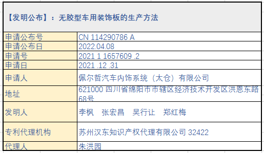摘要:本发明涉及一种无胶型车用装饰板的生产 方法,经纸芯拉幅定型、材料叠放、聚氨酯喷胶、 保压制板、氨酯灌装预热、基板预置、零件熟化制 得成品;本发明的无胶型车用装饰板的生产方法 所生产的装饰板使用聚氨酯层代替聚酯毯面材 料,外观美观,手感柔顺,可以防水浸润,易洗快 干,可适应多种场合、多种用途;取消了胶粘剂的 使用,优化了装饰板的气味观感;使用一步法工 艺,减少生产工序,提高生产效率。