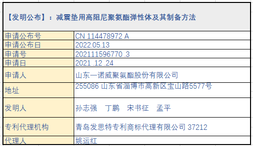 摘要:本发明涉及聚氨酯弹性体的制备技术领域, 具体涉及一种生减震垫用高阻尼聚氨酯弹性体及其制备方法。所述的减震垫用高阻尼聚氨酯弹性体,由A组分和B组分混合制成;A组分百分含量的原料组成为:聚醚多元醇A,聚醚多元醇B,植物油多元醇,增塑剂,抗老化剂%,催化剂;B组分质 量百分含量的原料为:聚醚多元醇C,异佛尔酮二异氰酸酯,MDI,增塑剂;B组分为异氰酸根质量含量为15%~22%的预聚物。本发明提供一种减震 垫用高阻尼聚氨酯弹性体,具有高阻尼性,体系无填料加入,产品稳定性好。