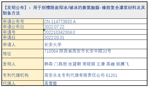 摘要:本发明公开了一种用于刻槽路面抑冰/破冰的聚氨酯脲‑橡胶复合灌浆材料及其制备方法, 涉及路用灌浆材料技术领域。该聚氨酯脲‑橡胶复合灌浆材料,以质量分数计,包括聚氨酯A组分40~45份,聚氨酯B组分200~210份,聚脲A组分 0~55份,聚脲R组分50~55份,有机溶剂14~21 份,催化剂1~3份,橡胶颗粒150~350份。根据既定的原材料配比,将聚氨酯、聚脲混合,配以有机溶剂、催化剂进行搅拌,再加入橡胶颗粒搅拌均匀,即得到聚氨酯脲‑橡胶复合灌浆材料,可作为填充材料用于刻槽路面,实现路面抑冰破冰的目