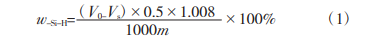 式中:V0、Vs ——空白滴定和样品滴定消耗硫代硫酸钠标准溶液的体积,mL;m ——样品质量,g;1.008 ——氢原子的摩尔质量,g/mol;w ——质量分数,%。