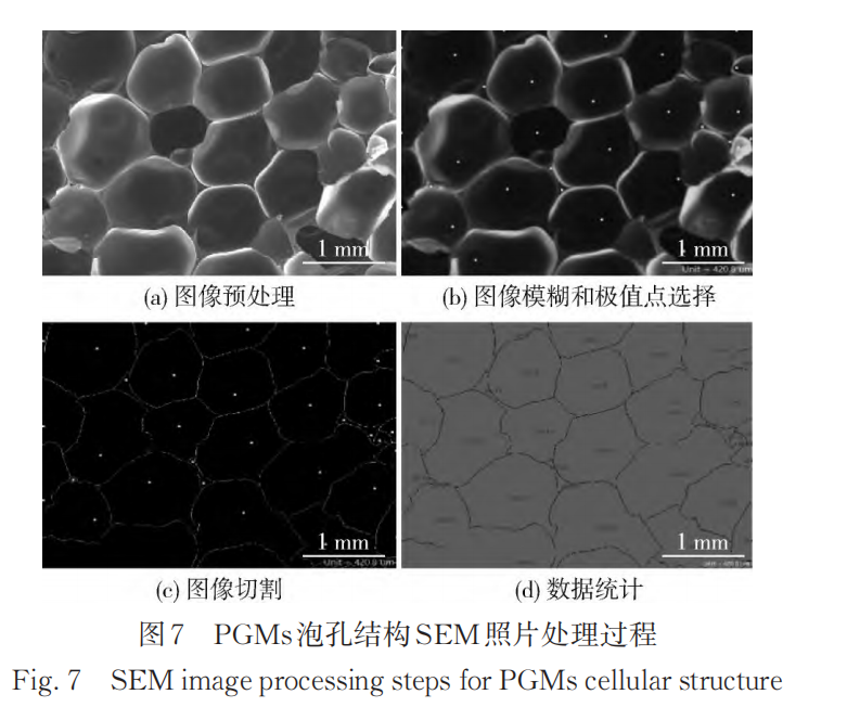 泡孔结构分析:沿垂直于发泡的方向将试样切成3 mm厚薄片,通过导电胶将其黏附在平台上,进行2次真空喷金处理,随后用 SEM 拍摄 PGMs 的泡孔结构,测试电压为15 kV,放大倍数为30倍。