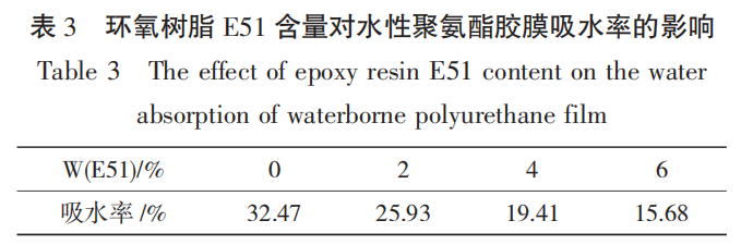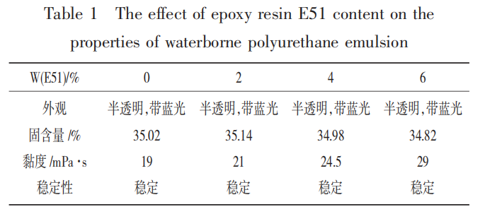 通过加入环氧树脂 E51,合成了一系列的环氧改性水性聚氨酯乳液,并制得胶膜。研究结果表明: