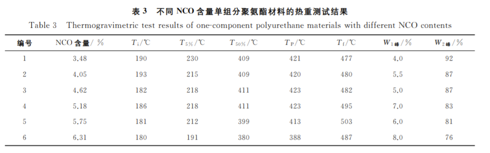 NCO含量对潜固化型单组分聚氨酯材料性能的影响
