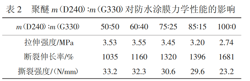 本研究以二异氰酸酯、聚醚多元醇、新型改性剂等为基本原料,制备一种环保型单组分湿固化聚氨酯防水涂料,并探讨聚醚组合、改性剂、增塑剂对防水涂料性能的影响。